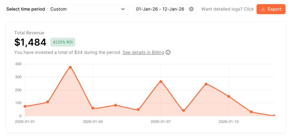 Spent $34 and got revenue of $1484 in less than 12 days!